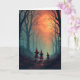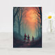 Three little goblins in red hats stand in a haunted forest, gazing at an enormous, full, fiery-orange moon. Cute and fun Halloween card.