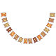 The flags have alternating nuances of orange and light brown (neutrals , earthy tones). The letters are yellow. There are 2 yellow crosses on darker brown between the words. The message is "God Bless" followed by a 6 letters name that you should change letter by letter (the default is Jessie).