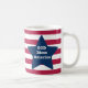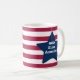 Cup Mug coffee tea beverage drinking container printed with God Bless America Red White And Blue lettering and stripes artwork design by TheFabricSeal at Zazzle.com #ZazzleMade TheFabricSeal©️Original.