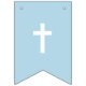Celebrate your son's baptism day with this modern and elegant "God Bless" bunting banner personalized with the baby's name. The pennant flags feature white text with cross accents in alternating shades of baby blue and light silver gray. The background colors can be modified to any preferred color scheme. A charming party decoration for your baptism or christening celebration. All text can be fully personalized.