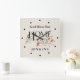 Very easy to personalise and very pleased with whole process from start to finish. Clock fits with our decor and looks fantastic on the wall! Excellent, easy to read.