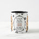 A beautiful orange red ChowChow Dog sits on two sides of this mug. The text between the two images says "On the 8th day, God created the CHOWCHOW and called it VERY GOOD". The dog images and the white oval banner containing the text fields are placed on a white background with black paw prints.