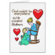 This design features a mother sitting in a wooden rocking chair with a little girl in blonde braids sitting on the floor at her feet. has embossed red heart decorations.