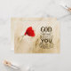 Flat greeting card depicts a lone red flower with a muted field of wheat in the background. It features an encouraging Christian quote, "God did not create you to blend in." The back features Bible Verse Matthew 5:16, "Let your light so shine before men, that they may see your good works and glorify your Father in heaven." The greeting, prayer can be personalised or deleted for a hand written message.