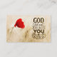 Business card depicts a lone red flower with a muted field of wheat in the background. It features an encouraging Christian quote, "God did not create you to blend in."