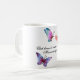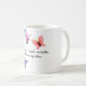 White coffee mug with butterflies and a spiritual thought. A beautiful gift for just about anyone that has belief in God.