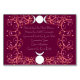 Horned God and Triple Goddess themed Wiccan wedding table card with guests listed.