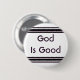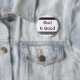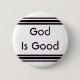 God is Good Christian coloful stripes button pin. Select customise to change the background colour or font.