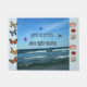 A beautiful view of the ocean with waves rushing to the shore. The sky is so blue with a few white clouds. In the sky are the words "God good all the time" with 3 different coloured birds flying around these words.