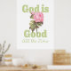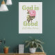 A beautiful Christian wall art poster featuring the uplifting phrase “God is Good All the Time” with a vintage pink rose illustration. Perfect for home décor, nursery walls, or as a faith-inspired gift.