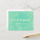 God is Good all the Time Quote Postcards. Inspirational Christian message cards with a rustic distressed green design. Just a lovely reminder to anyone that things are alright.