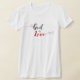 "God is love" (1 John 4:8). Fun flourishes and hearts embellish the text for a feminine design. Choose your favourite shirt colour and style to make it your own.