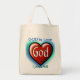 The bag is well made and very strong. Holds a good amount of groceries. I get asked about it all the time. The printing is great and very clear.
