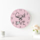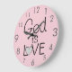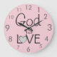 This is a beautiful light pink and grey round wall clock that says 'God is LOVE' printed in big letters. A cute grey heart replaces the letter 'O' in LOVE. It will make a beautiful Christian gift idea for someone you love...