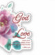 Add a beautifully scripted verse “God is Love” Christian sticker to your favourite items and motivate your day with the verse from 1 John 4:16. The verse is set against a elegant pink watercolor flower.