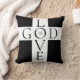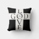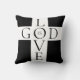 This inspirational Christian throw pillow will make a powerful statement in your home decor. This design features the quote, "God is Love" in a simple but elegant black on white typography with a cross pattern on the background. Designed by world renowned artist ©Tim Coffey.