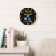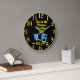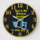 Enjoy this cool looking round clock. It says God is My Wireless Provider - Phil 4:19. The yellow text can be changed to what ever you want it to be so enjoy the colors you feel are great for you so you can use any back ground color you prefer by using the custom tag.