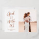"God is with us" in brushed script in real foil. Edit and customise to change the name, year, and fonts, and foil colour. Customise further to add more text or more photos to the back side. Original illustrated frame of winter foliage.