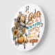 Purchased this online and it got delivered quickly. It was a present for my Dads 70th birthday. He loves clocks so decided to get him one with something written on it. Battery went in and it started working straight away. Dads had no issues with it. Printing was just how it came up online.