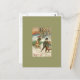 Vintage image for a Scandinavian greeting. Little boys and girls walking through the snow with their Christmas tree and pulling their little sister on a sled. Tiny image on limited gift products.