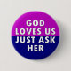 God loves us 6 cm round badge