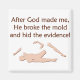 After God made me, he broke the mould and hid the evidence. Funny humour design with broken human mannequin image, created by Briana Blair.