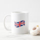 The Union Jack flag in red, white and blue and the words God Save the Queen across it. Wear your support of the British monarchy!