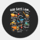God Says I Am Christian Bible Verses Boys Construc Classic Round Sticker