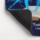 Modern stylish customisable Scripture MOUSE PAD, showing image of open Bible with Year 2020 in cyan blue typography against a midnight blue background. The words GOD SPEAKS THROUGH HIS WORD appear in white, with a customisable Bible verse and Bible reference, which you can personalise with your own favourite Scripture or add your name. In the background there is a subtle tiled pattern of INSPIRATIONAL WORD OF GOD. Other similar items are available in the GOD HAS THE FINAL SAY Collection by Berean Designs.