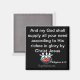 Our custom Bible Scripture Magnets will draw attention everywhere! These sleek black magnets fit with any décor. Place them on your fridge or file cabinet; it works in the home, school, or office. Be constantly reminded of God’s goodness. Collect them all! Make for excellent gifts. Scripture: "And my God shall supply all your need according to His riches in glory by Christ Jesus"