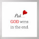 No matter what, God wins in the end. An uplifting message for these trying times, this design features a combination of standard and script typography adorned with a whimsical red heart. Place anywhere to remind yourself everything is good!