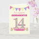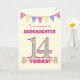A pretty 14th Birthday card for your goddaughter, with polka dot bunting, primrose flowers and numbers filled with a primrose pattern, all on a pale yellow check gingham background. The front cover message is, 'To a very special GODDAUGHTER 14 TODAY!' The inside message is just a suggestion and you can easily personalise it or delete it if you prefer.