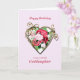 A romantic birthday card. A painting of roses is framed by an embellished golden heart. Give your goddaughter a birthday greeting with a beautiful painting of a bouquet of roses.