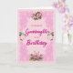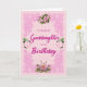 A pretty birthday card for a goddaughter. An elegant tracery in pink sets of the four pink roses. The background is a pale pink pattern of flowers. A lovely card to send to a god-daughter on her birthday.