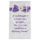 Goddaughter quote with purple and white polka dot ribbon and cosmos flower on light grey rustic barn wood.