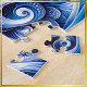 Relaxing Puzzle - Goddess Celestial Blue Head January Vibes - This beautiful flowing, ai generative content Design shows a Head of a beautiful Woman with closed eyes and flowing long hair in the background is the divine celestial Universe. The main colours in this Art piece are different shades of blue, white.