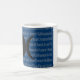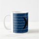 The background image of this mug is silver font over a rich blue. In silver are the names of six goddesses- Isis, Astarte, Diana, Hecate, Demeter, Kali, Inanna. In front of the background is the symbol of the triple goddess.