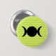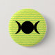The background of this button is yellow with pale green font, repeating the names of the goddesses: Isis, Astarte, Diana, Hecate, Demeter, Kali, Inanna. In front of this chant is the symbol of the Triple Goddess.