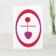 Write your own note or greeting on this Goddess-inspired card. Judith Laura's cover design contains three Goddess symbols: The glyph is composed of the biological sign for female (and astrological Venus symbol), the ancient triangular Goddess symbol; it is surrounded by the ovoid or egg shape. Colours: purple and red on white. Medium: digital.