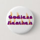Purple with shadows and flames rising from the letters spell out "Godless Heathen." Wear your Atheism with pride.