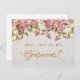 This elegant floral "Will you be my Godparents" proposal postcard has a marble background and pink and (a few) white orchids on its upper half.