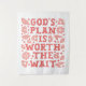 God's plan is worth the wait Christian girl godly relationship quotes pink floral cute preppy coquette country cowgirl aesthetic mental health inspirational gift white tapestry living room kitchen home decor.
