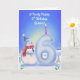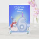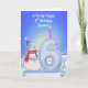 This whimsical winter illustration is perfect for celebrating your godson's sixth birthday designed to be fully winter with colors and details. A cheerful snowman stands proudly beside the snowy “6” he has just built, admiring his handiwork with a joyful expression. Snowballs are scattered around the base, adding playful movement, while soft winter flowers bring a gentle seasonal touch. The cozy palette and charming details create a magical winter atmosphere kids adore.