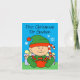 Godson's First Christmas featuring a cute, cartoon baby elf. He's holding a candy cane and sits in front of colourful gifts. Great for a newborn godchild on Christmas.