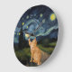 Introducing our latest addition the enchanting "Gogh Kitty" clock. This unique piece masterfully combines the classic beauty of Vincent Van Gogh's "Starry Night" with a whimsical twist—a charming cat playfully swatting at the swirling stars above. The vivid blues and yellows of the iconic painting serve as a mesmerising backdrop, while the silhouette of the cat adds an element of playfulness and warmth to the scene. Crafted with exquisite detail, this item brings a touch of whimsy and artistic elegance to any room. Whether you're looking to add a splash of colour to your living space or searching for the perfect gift for the art lover in your life, "Gogh Kitty" is sure to captivate and charm all who lay eyes on it. Printed on high-quality, durable material, this item is designed to maintain its vibrancy and allure for years to come. Transform your space with this delightful fusion of classic art and playful imagination—a truly unique piece that celebrates the beauty of the night sky and the curious nature of our feline friends.