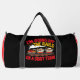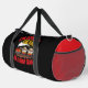This humourous black and red duffle bag features a playful graphic of a train with gravy boats for cars, chugging along on a gravy track. The text "I'M GOING OFF THE RAILS ON A GRAVY TRAIN" is displayed above, making a quirky statement. Perfect for foodies, travelers, or anyone with a fun, unconventional sense of humour. Edit colour of the bag caps and body in the Design tool to your favored colours.