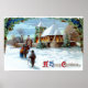 Time to go to church! This vintage Christmas print depicts people going to church, snow and evergreen trees everywhere.