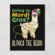 Funny Mardi Gras design with alpaca graphic and pun.