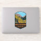 A vintage park badge design of the Going-to-the-Sun Road viewed from Logan Pass a scenic mountain road in the Rocky Mountains located in Glacier National Park in Montana.