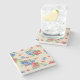 The coasters are gorgeous, a quality feel and heavy weight. They look like a precious archeological find. A rustic stone juxtaposed with a modern floral black and white print. I like the way the print goes slightly imperfect on the cut stone edges giving them a kind-of natural beauty.